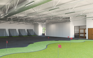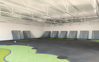 The initial stage includes a full-size indoor professional putting and chipping area along with temporary hitting bays for use with our Skytraks and other ball flight simulation hardware and software. As more funds are raised, we would like to install a couple permanent full swing bays with cameras for swing analysis and more simulator technology along with training aids and support.